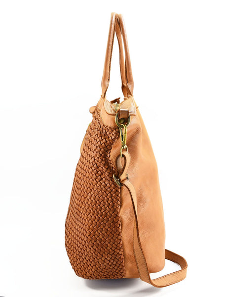 Size: 35 x 18 x 37 cm MADE IN ITALY - Schöner Beutel mit abnehmbaren langem Schultergurt - Vorderseite geflochten & Rückseite Glattleder - Material: Leder Leather geflochten (Zustand: ohne Mangel, neu) Ein Lieblingsstück für´s italienische Lebensgefühl aus Italien - Eine Tasche für Liebhaber! Handlich, hochwertig und äußerst attraktiv! Die absolut perfekte Tasche für den Alltag, zum Ausgehen oder für´s Business! Mit dieser eleganten Tasche ziehen Sie ganz sicher alle Blicke auf sich! Diese ist aus super schönem und weichem Leder gefertigt und wird mit einem Magnetknopf verschlossen. Das grosse geräumigen Innenfach bietet viel Platz und wird mit einem Reißverschluss geschlossen. In der Tasche gibt es dann noch seitlich ein Reißverschlussfach und 2 kleine Einsteckfächer für Telefon und Geldbörse. Ausstattung Details: - geräumiges Hauptfach mit Reißverschluss - Handtragegriffe - Innenfutter aus Baumwolle -2 kleine Inntaschen und ein seitliches Innenfach mit Reißverschluss - Mit Tragegriff über die Schulter tragbar - zusätzlich ist ein langer abnehmbarer und verstellbarer Schultergurt dabei ca.90-120cm
