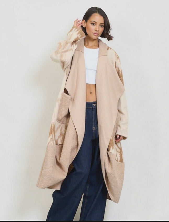 BZNA Oversize Open Front Strickmantel Wollmantel Beige Camel cocoon mehrfarbig - MADE IN ITALY