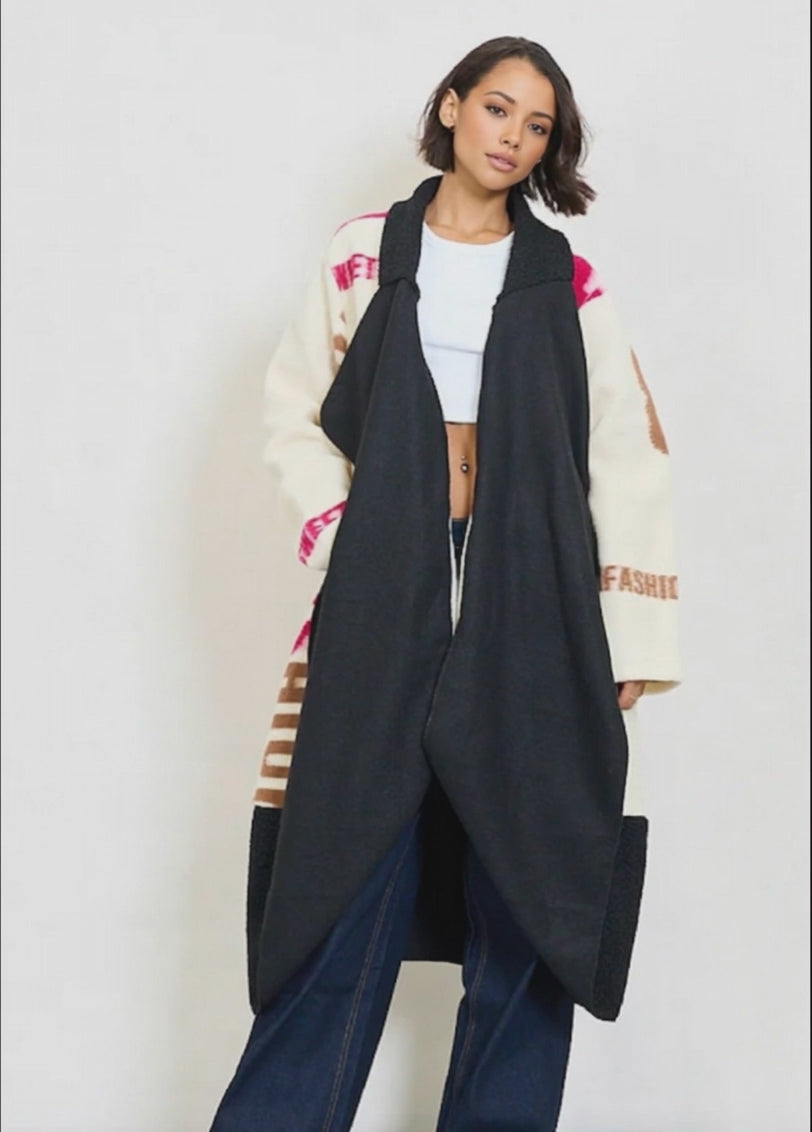 BZNA Oversize Open Front Strickmantel Wollmantel Creme Beige mehrfarbig - MADE IN ITALY