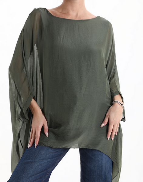 BZNA Seidenbluse Grün Tunika Seidentunika Seidenchiffonbluse Fledermaus Ärmel oneSize
