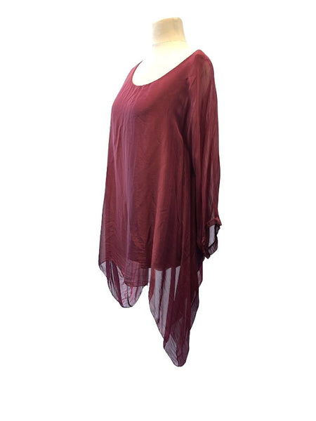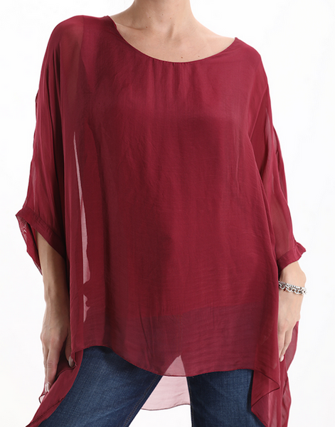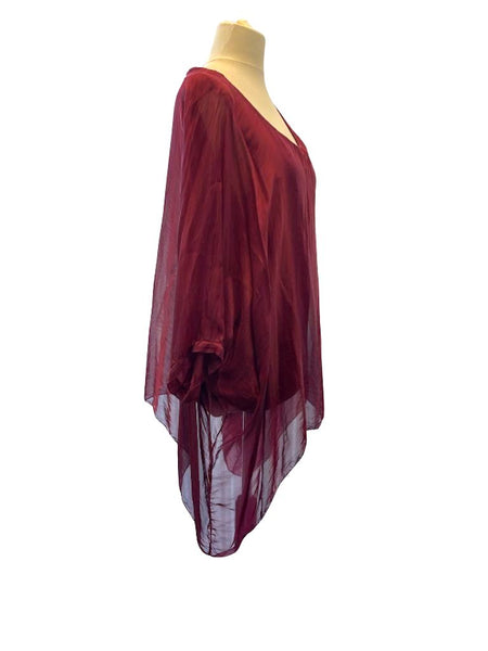 BZNA Seidenbluse Karminrot Tunika Seidentunika Seidenchiffonbluse Fledermaus Ärmel oneSize