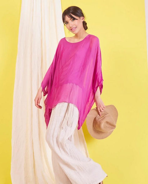 BZNA Seidenbluse Magenta Tunika Seidentunika Seidenchiffonbluse Fledermaus Ärmel oneSize